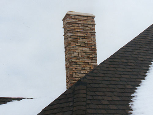 Both the house and the chimney of this Acton, Maine house are made beautiful by its cultured stone veneer.
